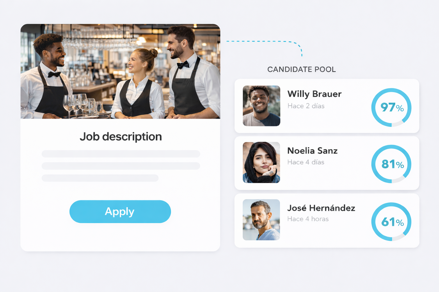 Reclutamiento de alto volumen para horeca, con evaluación real