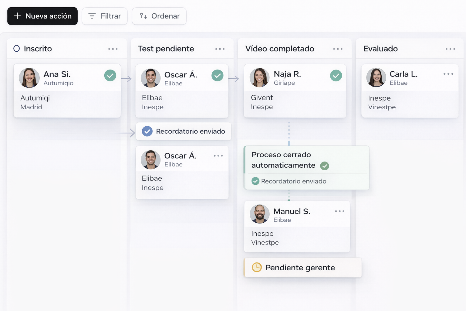 La IA se encarga del trabajo repetitivo para que tu equipo se centre en evaluar y decidir mejor.