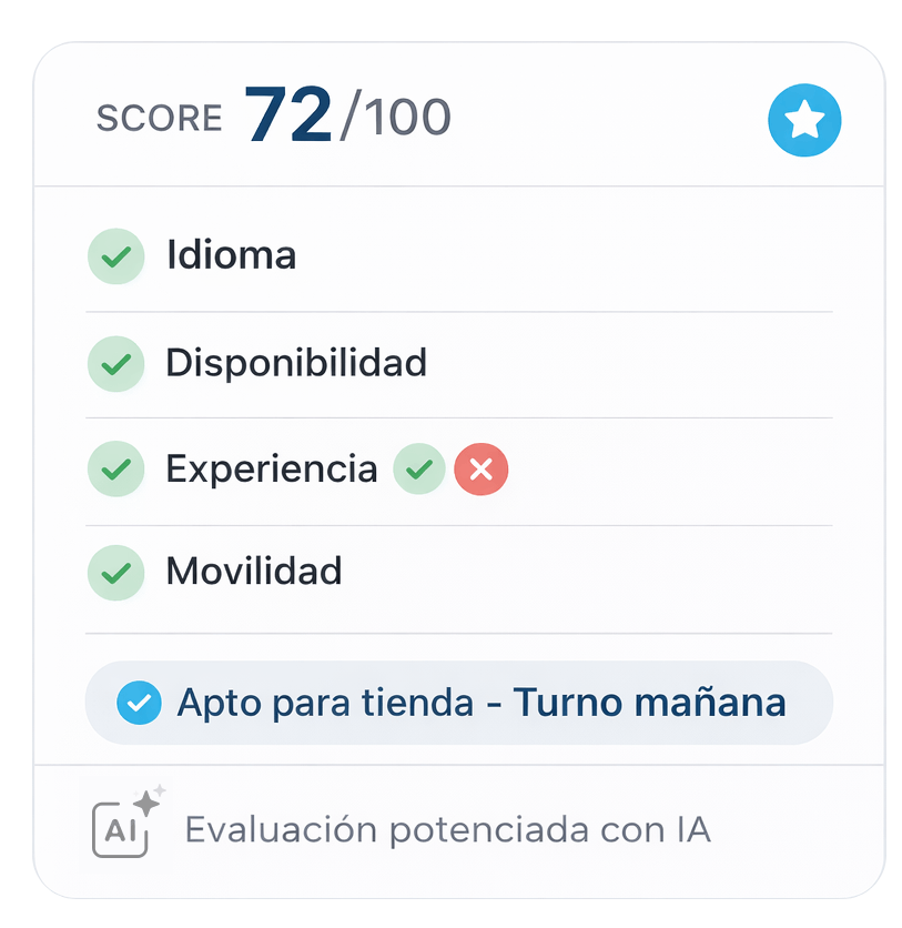 Automatiza la captación, la evaluación y el seguimiento de candidatos sin perder criterio humano ni calidad en la decisión.